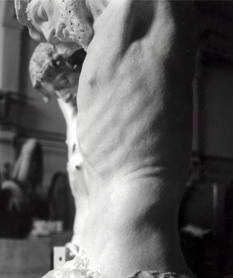 Copie à l’échelle 1/1, cette sculpture est réalisée avec un pantographe, outil permettant de rapporter chaque point prélevé sur le modèle dans la pierre. La succession de ces points permet une reproduction fidèle du modèle.